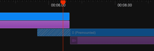 In the Remotion Studio, a premounted component is indicated with diagonal stripes: